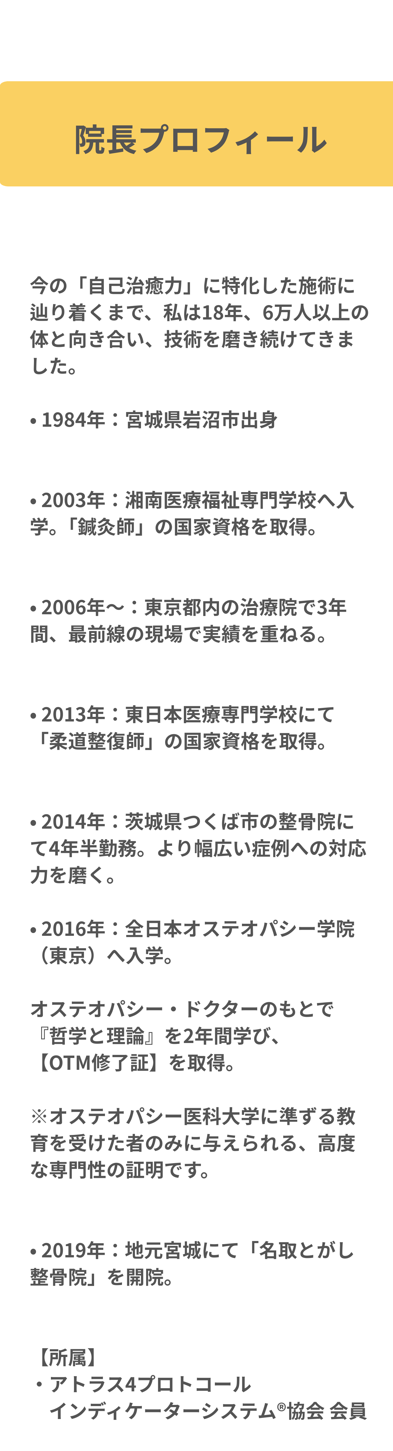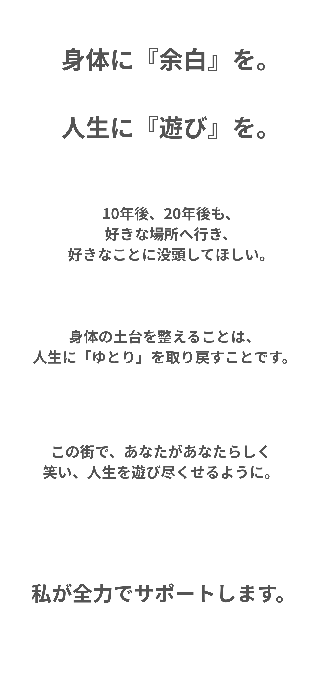 身体が、もっと、喜ぶほうへ。それが、僕の施術です。