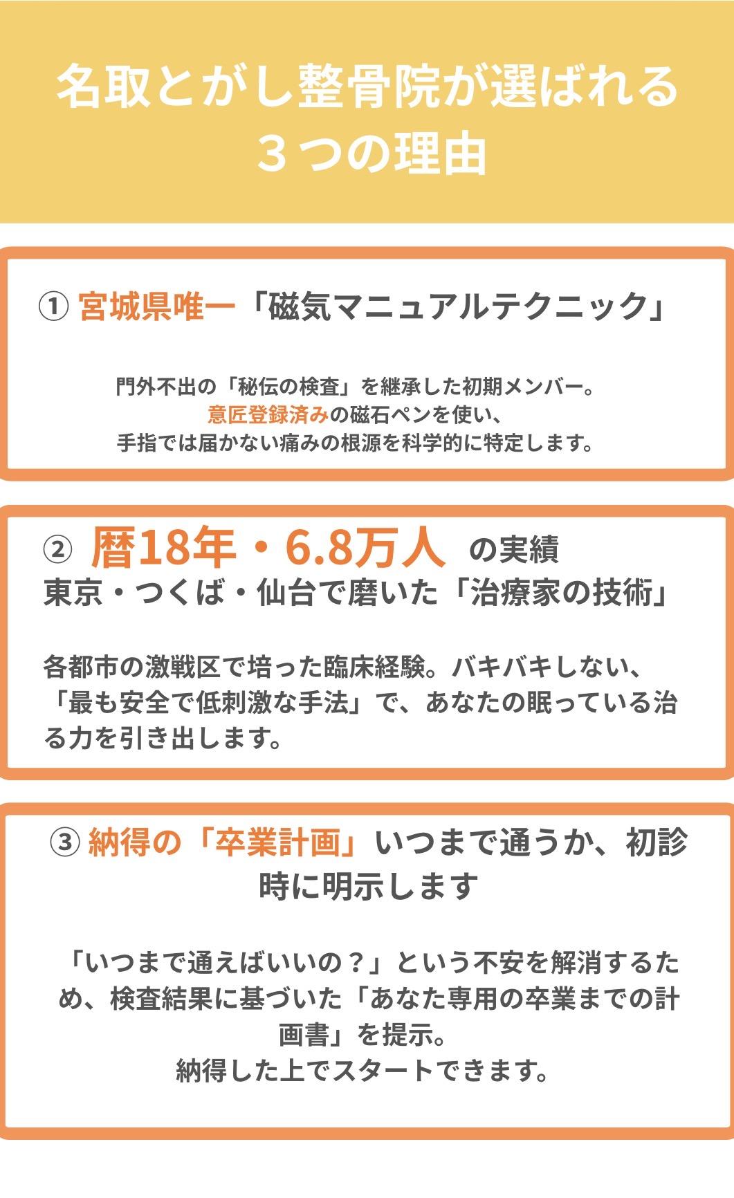 ・整骨院に来るのが初めてで不安もありましたが、すごく安心感があり、施術時間が短いので通いやすかったです。