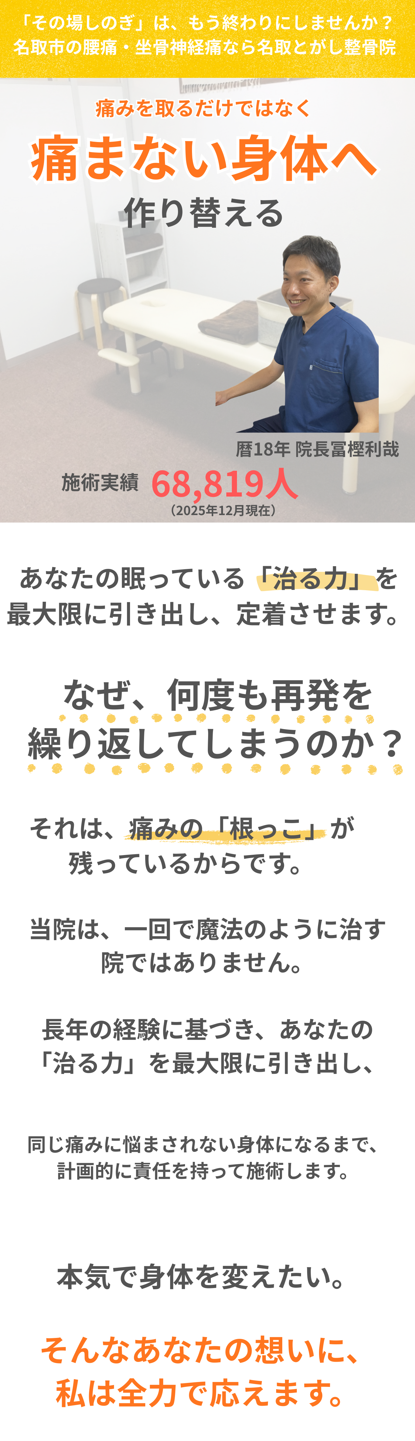 「名取とがし整骨院」が目指すのは、ひとえに、そのための治療です。