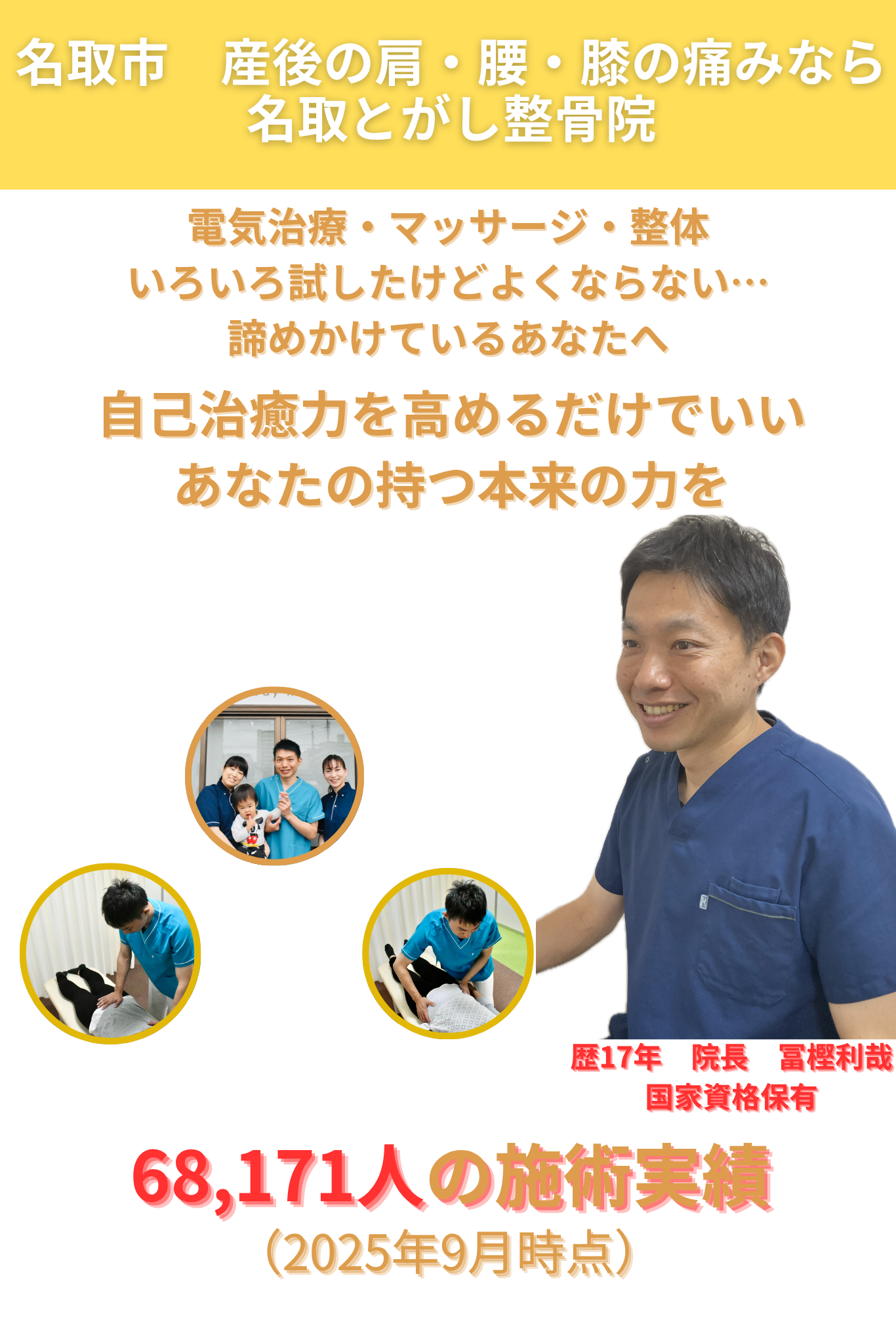 見渡すかぎり、笑顔だらけの整骨院を目指しています。
